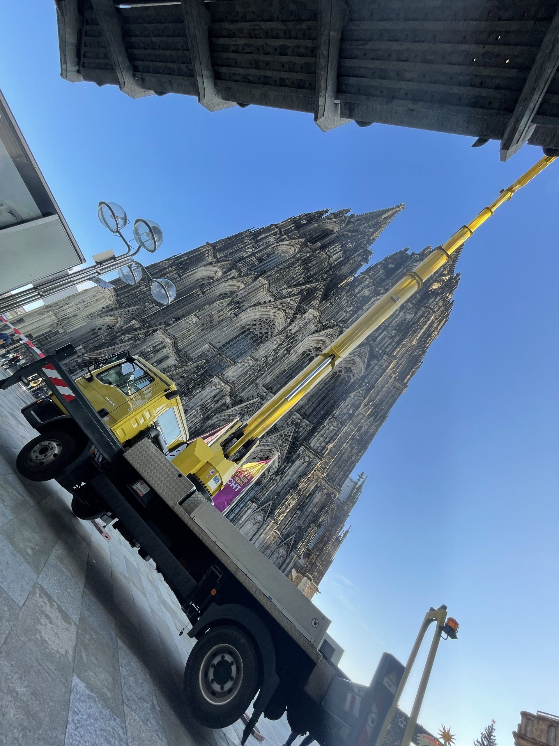 Industriekletterer, Höhenmontage, Messebau Köln, Montageservice, Dekotouren, Schaufenster Beklebungen, Shop Verklebungen, Cherrypicker, Hubwagen und Teleskopleitern sind nur einige Schlagworte die wir gern für Sie umsetzen.